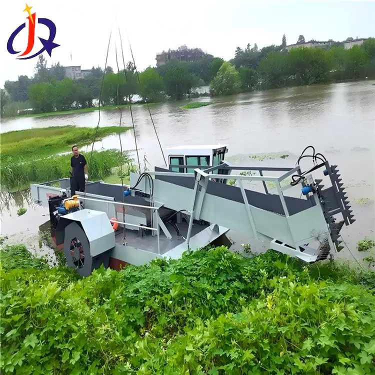 Ifakwe i-rotary cutting disc noma izindwani zohlobo lwe-crawler, ukujula kokusika kuyalungiseka (amamitha angu-0.5-2), kuhlangabezana nezidingo zokuvuna zezitshalo zasemanzini ezahlukene ezifana ne-hyacinth yamanzi kanye ne-duckweed. Iphampu yamanzi enengcindezi ephezulu noma isixhumi esihambisa isikulufu sifakelwe ukubona ukuqoqwa nokudluliswa kwezitshalo ezisikiwe, ukugwema ukungcoliswa kwesibili.