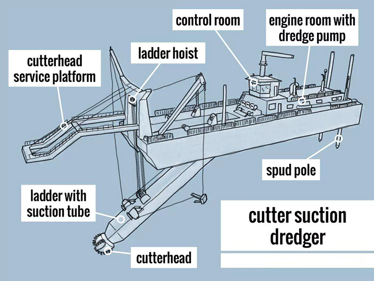 Ukuqhathanisa ne-Trailing Suction Hopper Dredgers: Ama-Cutter suction dredgers adinga indawo engaguquki futhi athuthe i-sludge ezindaweni ezingaguquki ngamapayipi akhiphayo; ama-trailing suction hopper dredger ayaziqhubezela, ancela udaka olunamakhanda alandelanayo, alugcine kuma-hopper awo odaka, abese ehamba ngomkhumbi ayokonakalisa izindawo ukuze azithukulule. Ziyakwazi ukuguquguquka okuphezulu futhi zifanele izindawo ezivulekile zasolwandle kanye nokugcinwa kwemigwaqo yamanzi.